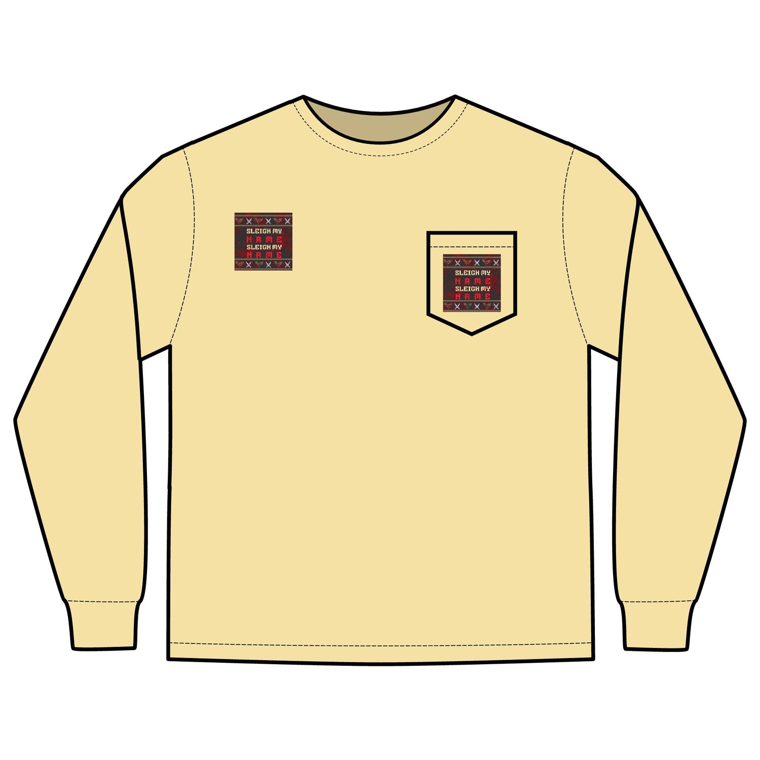 Funny Christmas Pocket T-Shirt | Sleigh My Name Design