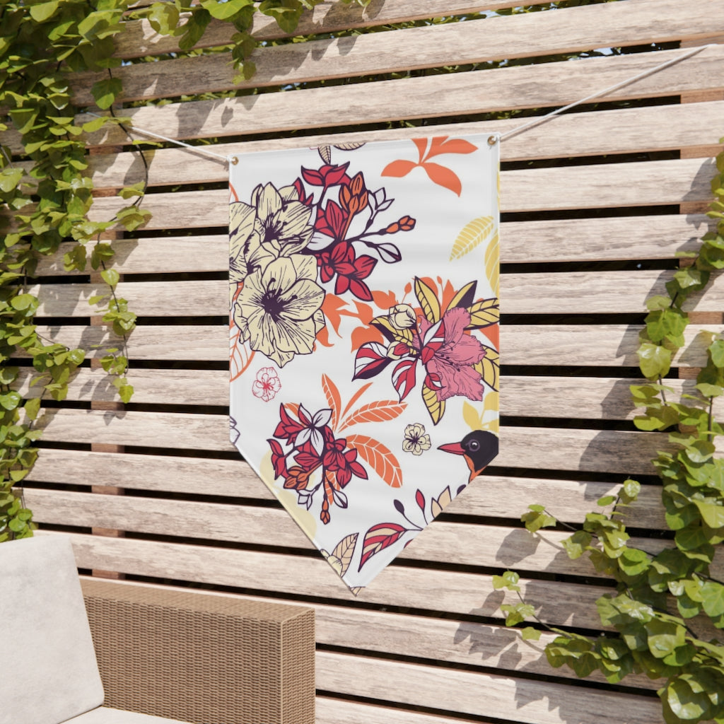 Equip your audience's home with a festive touch thanks to this custom pennant banner. Each pennant is made with 15oz block-out, scrim vinyl material for decoration that looks crisp for as long as possible. Your prints are made in full color with vivid details and each pennant has a slick white matte finish, two brass grommets on the top corners. 2x Hanging ropes included