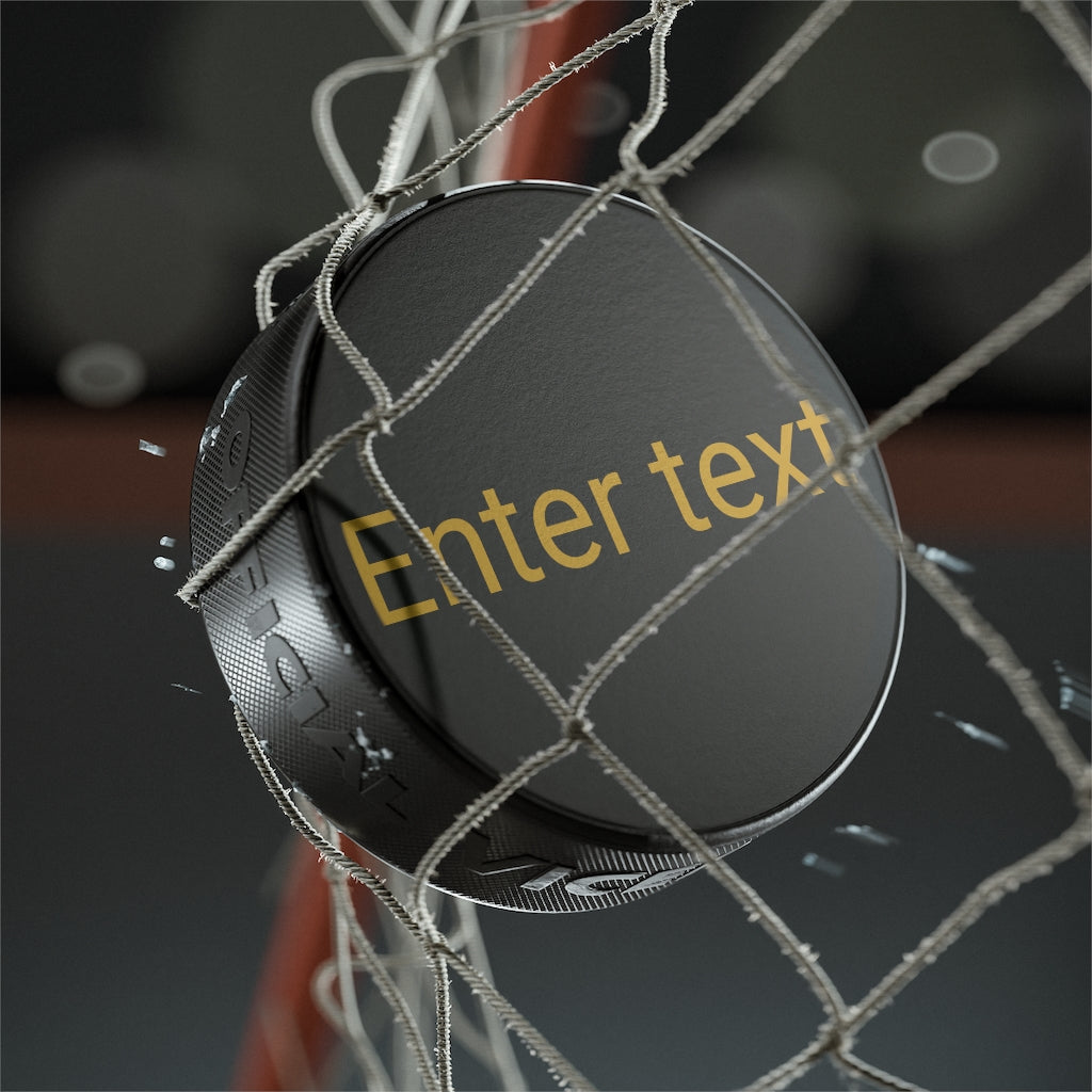 Treat hockey fans and athletes to their own personalized hockey pucks. This black puck features a robust rubber construction, comes in a standard size, and can accommodate all your designs, logos, and names in pristine quality.