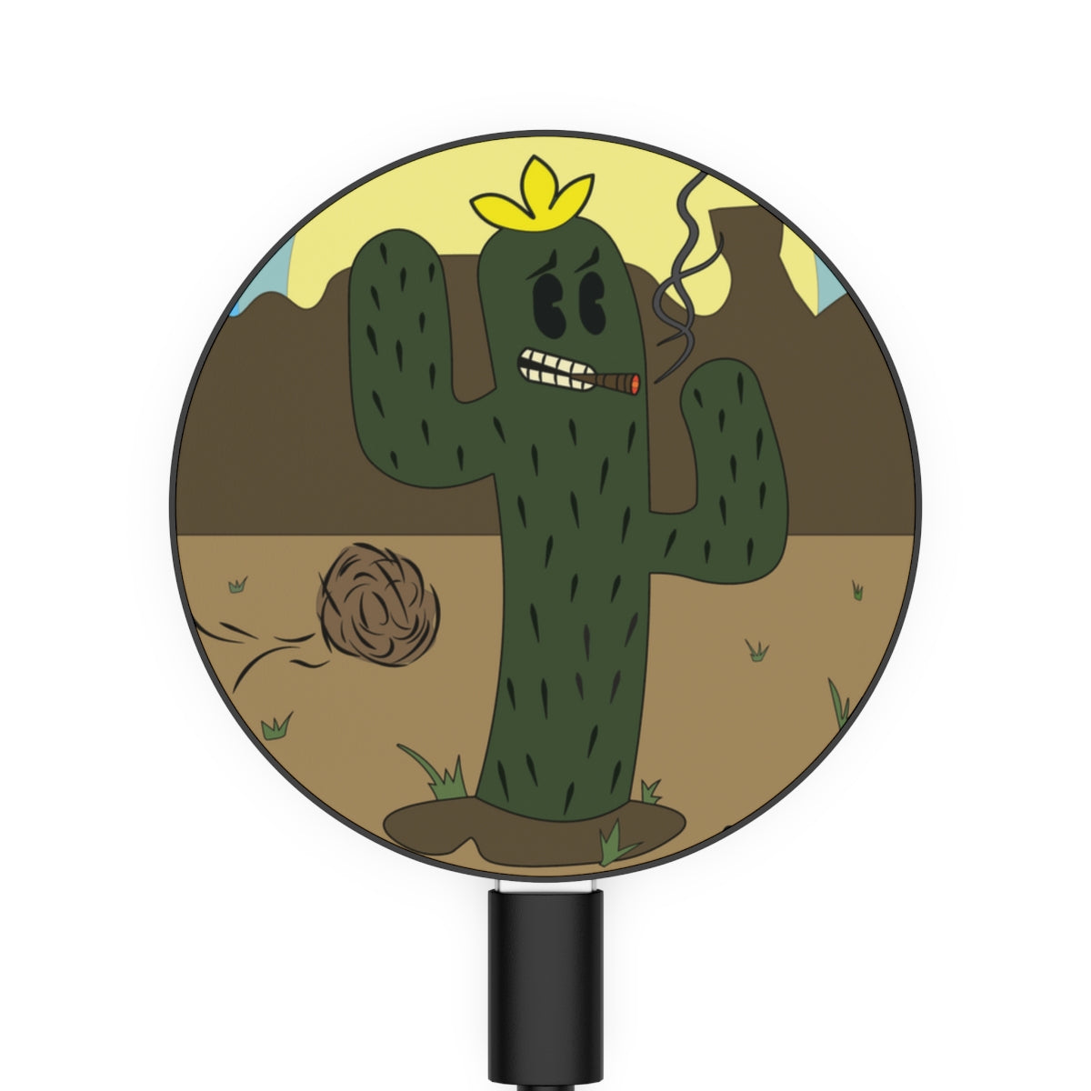 Created to satisfy gadget fans around the world, this customized wireless charger works universally with all wireless charging-compatible smartphones. With a slick black body, a matte white top, and a silver metal ring, it's a perfect canvas for your art. Comes with a built-in ring holder, supports Qi wireless charging standard and MagSafe function, and ships with a USB-C cable included.