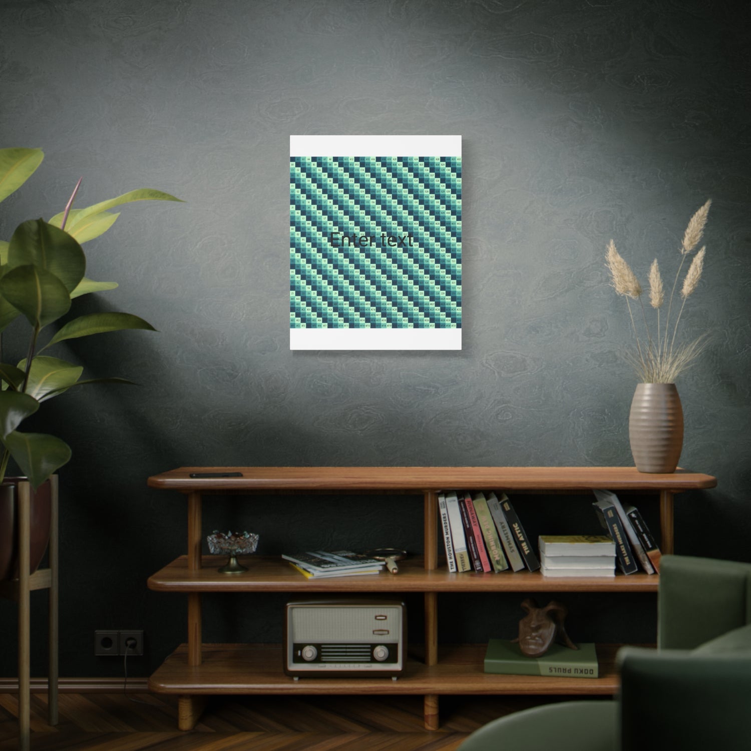.: Materials: cotton and polyester composite (canvas), pine wood (frame)